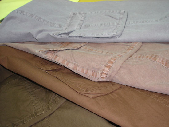 Details: | The finished clothing dyeing is to dye after the white semi-finished product clothing finished. It is different from the fabric dyeing. There is no limit in order quantity. Moreover, we can combine together with dyeing washing process to come out with different style products, Moreover, the stable dimensions after dyeing is a big innovation of finished clothing dyeing. | ||